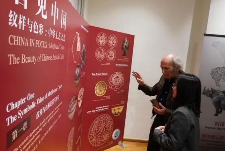 为庆祝中华人民共和国成立75周年,由中国驻欧盟使团、中国驻比利时大使馆和北京邮电大学共同举办的“看见中国”之《纹样与色彩:中华工艺之美》数字文化展27日在比利时布鲁塞尔中国文化中心开幕。