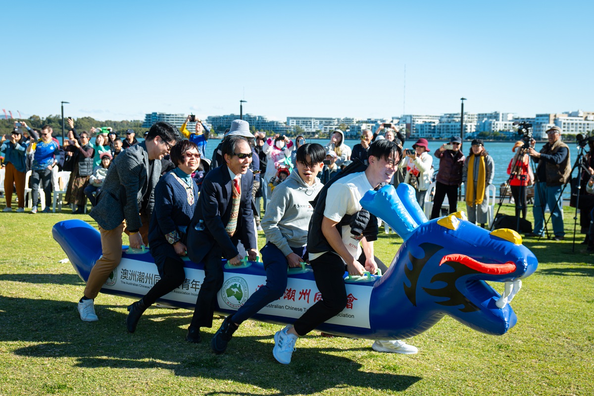 活动内容丰富多彩,包括旱地龙舟赛、粽子擂台赛、手工艺绘画、河畔音乐节、美食集市等。相较于传统的水上龙舟赛,旱地龙舟的参与门槛更低且更具趣味性,男女老少皆可参与其中并体验龙舟竞赛的魅力。8日的开幕式吸引了约200人参加,包括来自澳大利亚新南威尔士州的政界、商界、侨界代表以及当地居民。