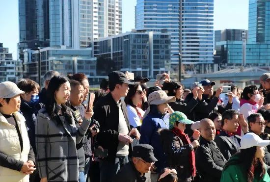 2023年7月8日,澳大利亚悉尼罗德区的海滨公园,观众们在首届罗德旱地龙舟节上观看歌舞表演。(摄影 李悦心)